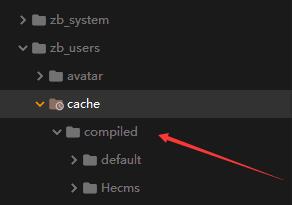 zblog網站的根目錄有zb_system和zb_users兩個文件夾,主題模板的編譯文件則在zb_users這個文件夾內,具體位置是:zb_users/cache/compiled/主題文件名(如下圖所示的default或Hecms)。