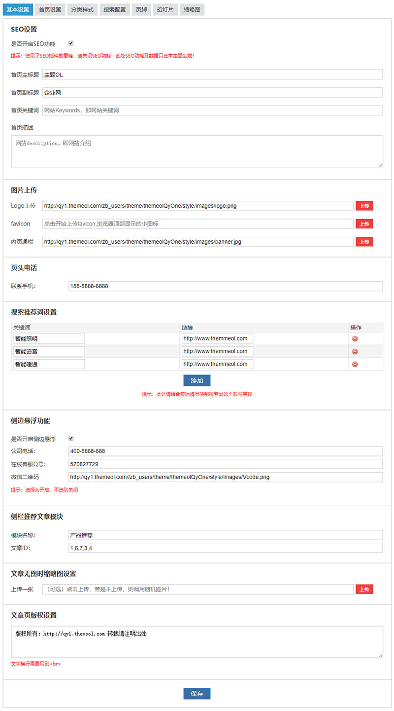 主題OL高端通用企業網主題(產品型),主題ID為themeolQyOne,設計上簡約、干凈、精致、響應式(可兼容各種終端,如手機、平板和電腦),功能上可滿足任意企業官網的使用,已更新至v1.6.9版本。