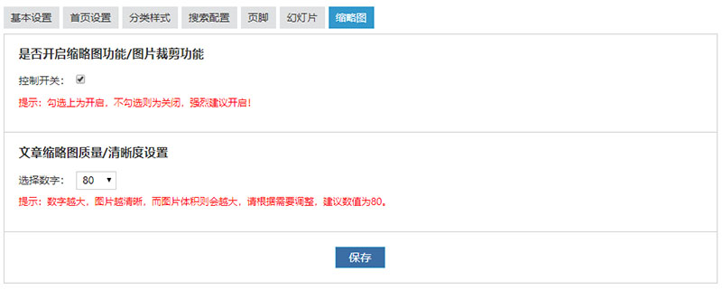 8,特色縮略圖剪裁功,不但保證了圖片質量,并且減小圖片體積!重點是:這個功能是在服務器后臺進行對圖片的剪裁處理,它對第一次訪問網站前臺的速度影響非常?。?/p>