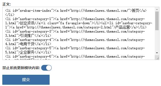3,開啟后,大家就可以直接在“正文”輸入框里進行導(dǎo)航代碼的輸入了,二級導(dǎo)航的代碼是這樣的: