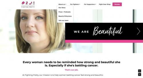 你可以將相似類別的網頁內容進行歸類,將它們收納在同一個導航下。正如你在下圖Fighting Pretty所看到的。選項上的每個導航都可以擴展以查看特定的網頁內容。只需要將鼠標懸停在每個導航上,你就能看到下拉選項。除了這個,Fighting Pretty也在網站標題上放上了企業商標、公司名稱,應用了突出顯示的功能。