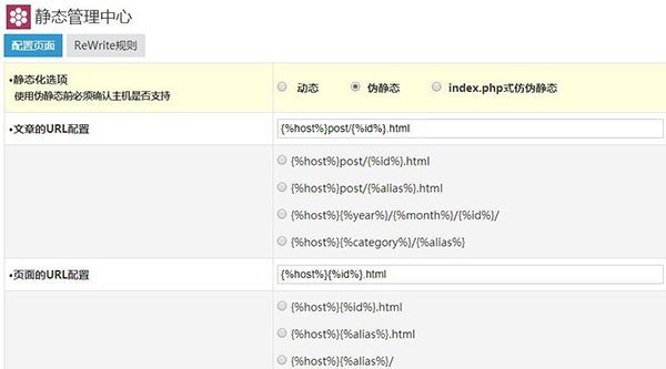 zblogphp靜態中心插件,有文章頁、單頁、首頁、分類頁、標簽頁、日期頁、作者頁的URL地址配置。