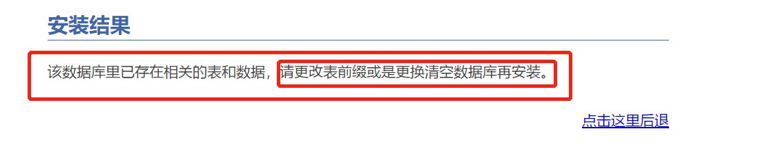 2,直接清空數(shù)據(jù)庫再后退到數(shù)據(jù)庫信息填寫頁面進(jìn)行重新安裝。