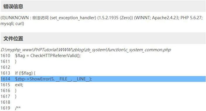 錯誤提示:(0)UNKNOWN : 非法訪問 (set_exception_handler) (1.5.2.1935 (Zero)) (WINNT; Apache2.4.23; PHP 5.6.27; mysqli; curl)
